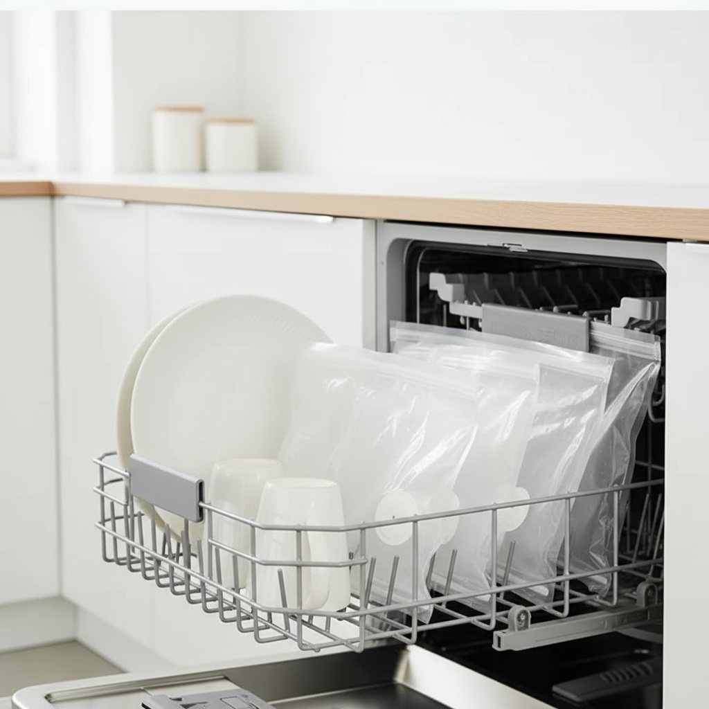 De medfølgende poser kan bruges igen og igen – skyl eller vask dem, og de er klar til næste brug. Det sparer både penge og reducerer unødvendigt plastikaffald.